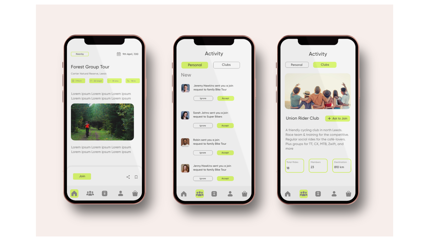 Add your family and friends to the ride, also look for clubs